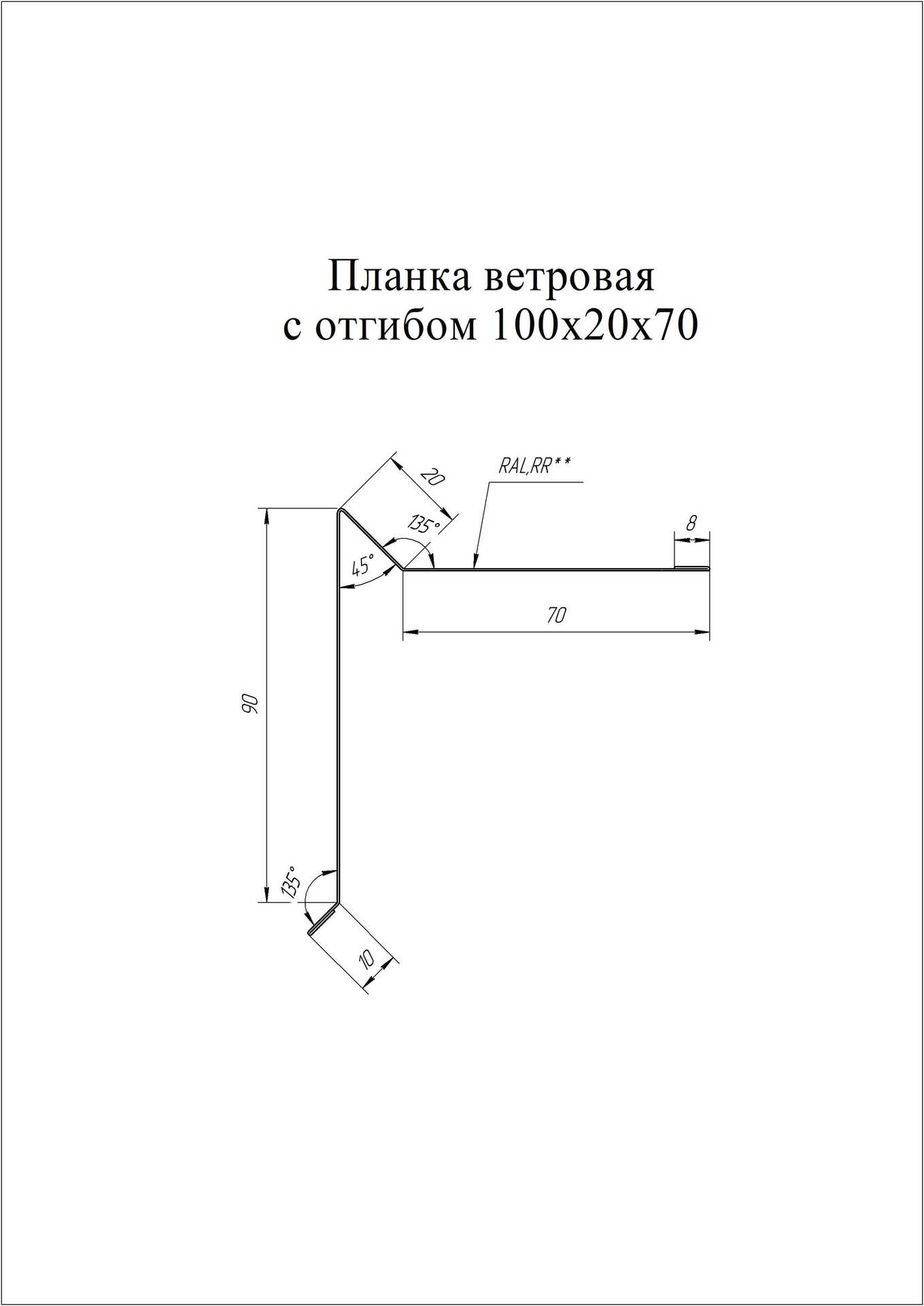 Планка ветровая д/м.кровли 100х20х70 0,45 Drap ST RAL 7016 серый антрацит