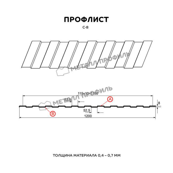 Профлист Металл Профиль С-8 0.28 и менее Полиэстер RAL 8017 Коричневый шоколад | A Показать информацию