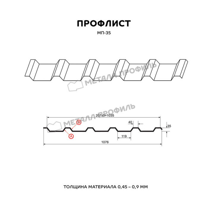 Профлист Металл-Профиль МП-35 Полиэстер 0.45 мм RAL 9002 Серо-белый